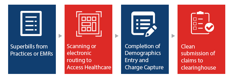 Import charges directly from the EMR. These charges are reviewed for accuracy before being sent for billing.